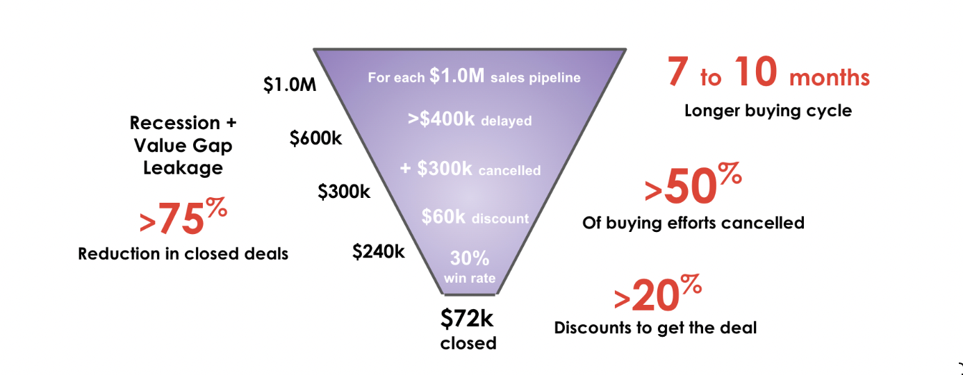 As these impacts add up, for every $1M in qualified new opportunity pipeline, what used to be $300k in wins is now slashed 75% to a meager $72k in closed deals.