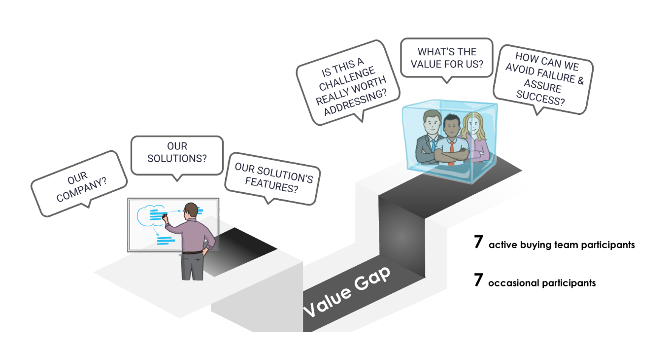 We call this disconnect the Value Gap, the divide between today’s buyer expectations and commercial team approach, and it can have a significant impact on your ability to capture new business growth or retain and expand existing customers.