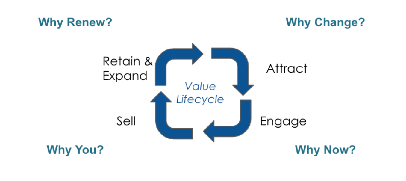 - Retain and Expand – Proving value realized from existing solutions and the additional value that expanding the relationship with you can deliver, answering the question “Why Renew?”